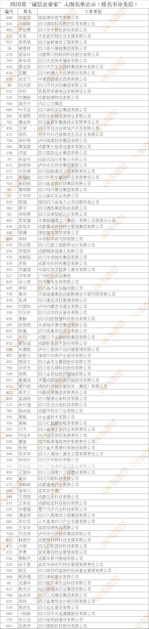 四川省“誠信企業(yè)家”入圍名單公示